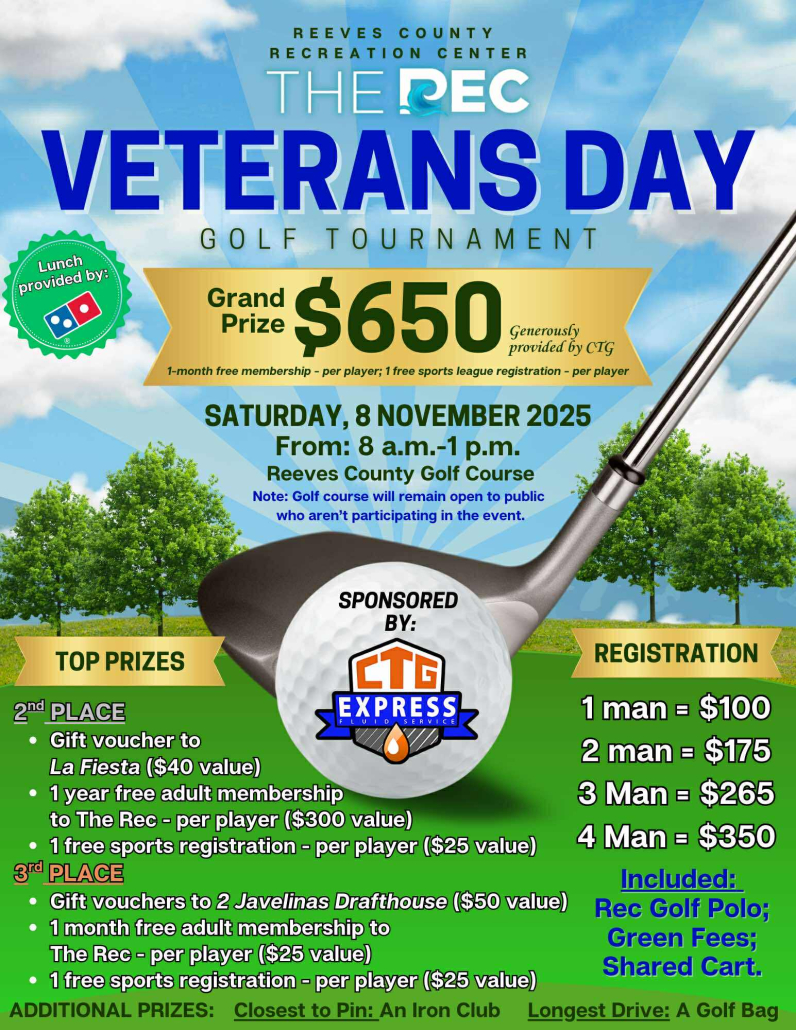 Sponsored by CTG Express, the event will be held at the Reeves County Golf Course and will include: