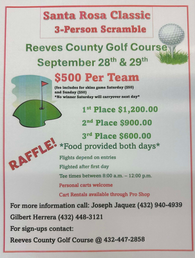 Personal Carts are welcome, Cart rentals available through Reeves County Golf Course Pro-Shop